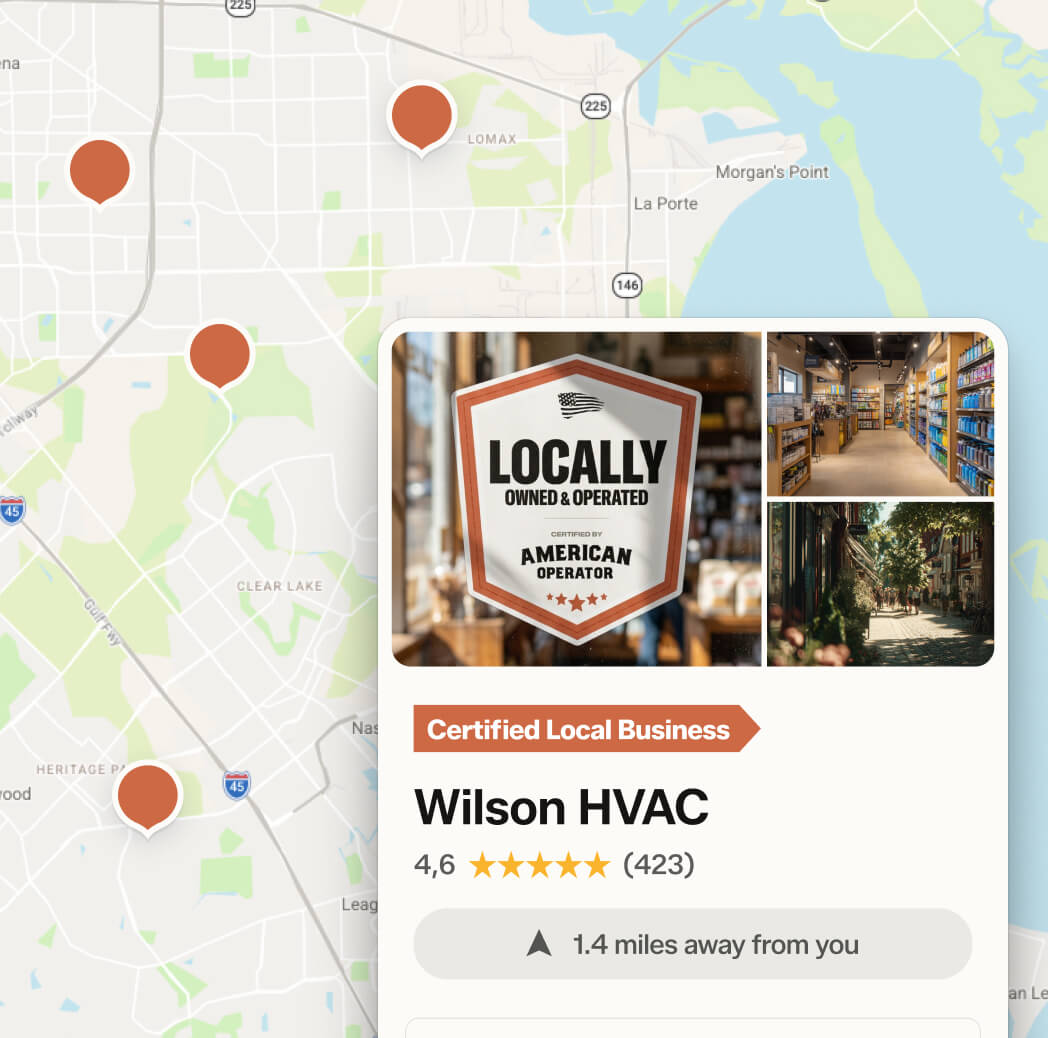 Be part of a growing network of locally owned businesses proudly making a difference in their communities. Certification is free, fast, and easy—and it helps customers find and support businesses like yours.
